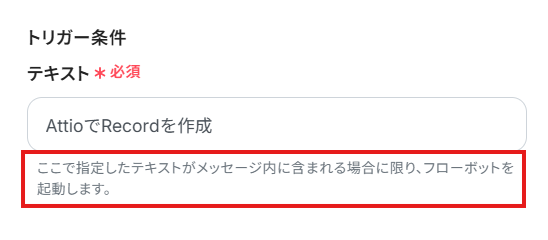 ※こちらで入力したテキストがメッセージ内に含まれていた場合、フローボットが起動します。