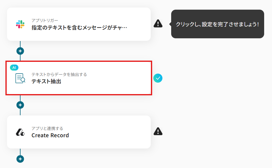 1.続いて、AI技術を使いSlackのメッセージからAttioに登録したいデータを抽出する設定を行います。
