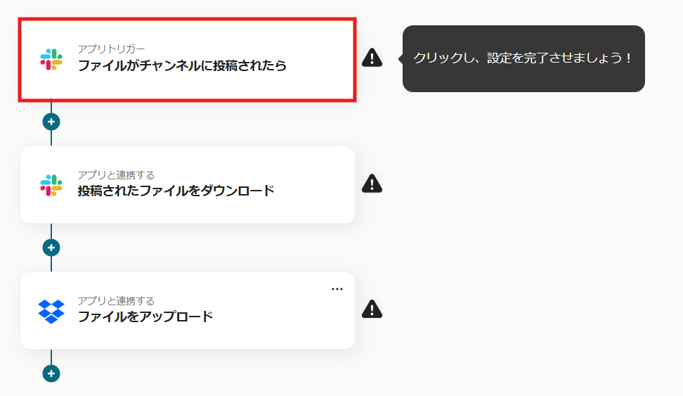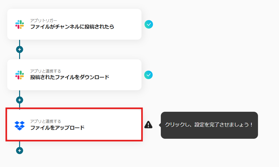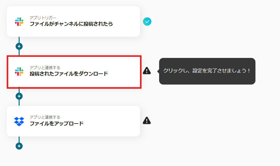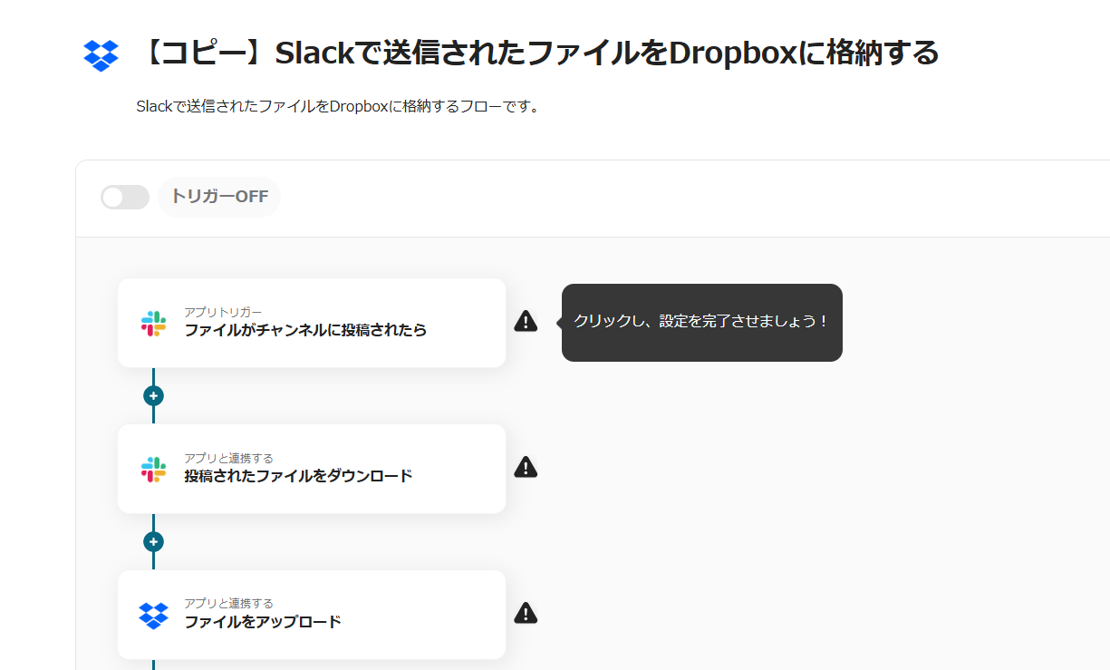 これで【Slackで送信されたファイルをDropboxに格納する】というフローが完成です。