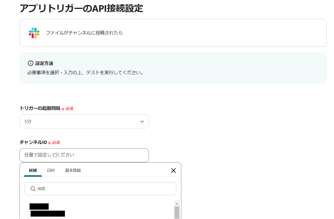 「アプリトリガー ファイルがチャンネルに投稿されたら」をクリックします。