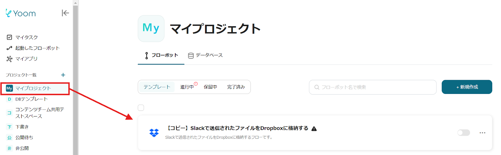 ここからは、Yoomのテンプレート【Slackで送信されたファイルをDropboxに格納する】を使って設定をしていきます。