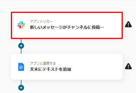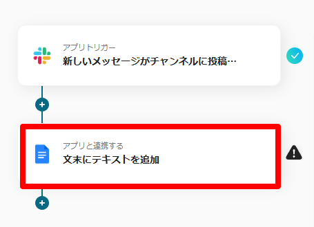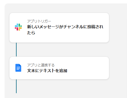 Slackで特定のルームに投稿された内容をGoogleドキュメントに追加するフローです。