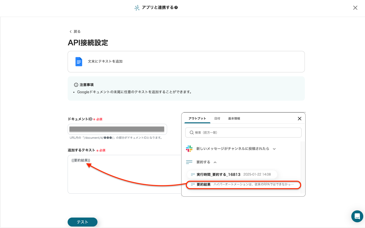 続いて、Googleドキュメントに要約結果を追加する設定を行います。