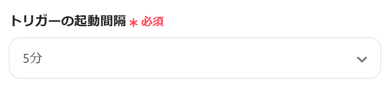 ※トリガーは5分、10分、15分、30分、60分の間隔で起動間隔を選択できます。プランによって最短の起動間隔が異なりますので、ご注意ください。