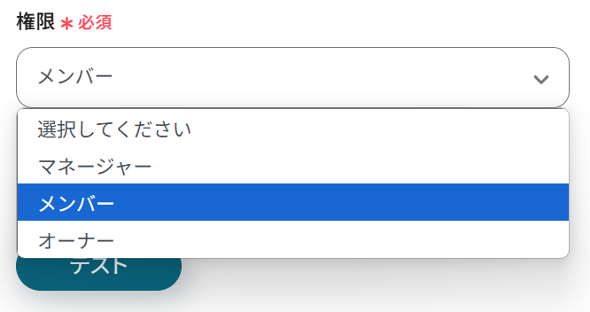 設定完了後、「テスト」を実行し、成功後に「保存」しましょう。