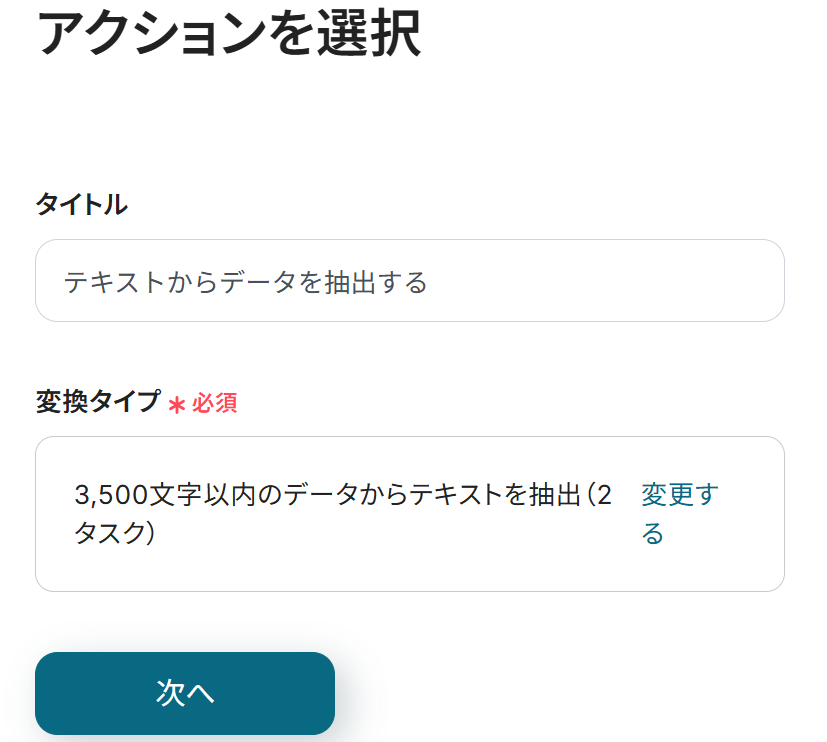 ※AIを活用した「テキストからデータを抽出する」設定方法の詳細は、こちらをご参照ください。
