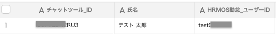 今回は、画像のように「チャットツール_ID」にSlackのメンバーIDを登録しています。同様に、対象従業員の氏名とHRMOS勤怠のユーザーIDを登録しましょう。