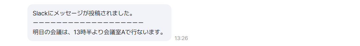 これですべての設定が完了したので、Slackでチャンネルに投稿されたらLINE WORKSに通知されるかを確認してみましょう。