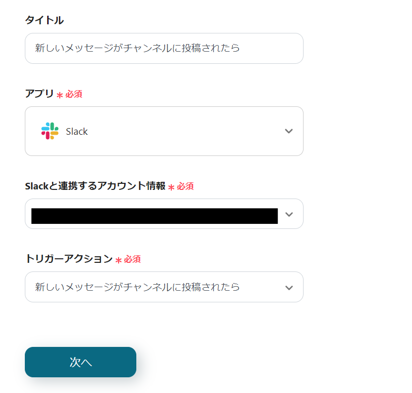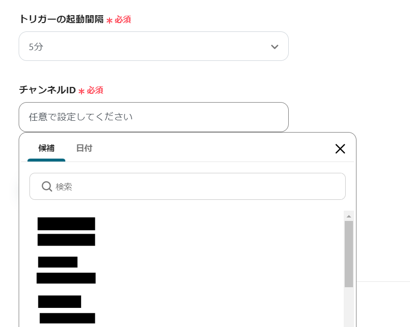 SlackとYoomを連携してください。 トリガーは5分、10分、15分、30分、60分の間隔で起動間隔を選択できます。 プランによって最短の起動間隔が異なりますので、ご注意ください。