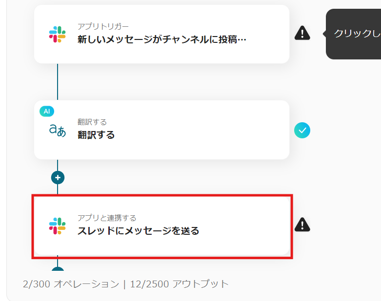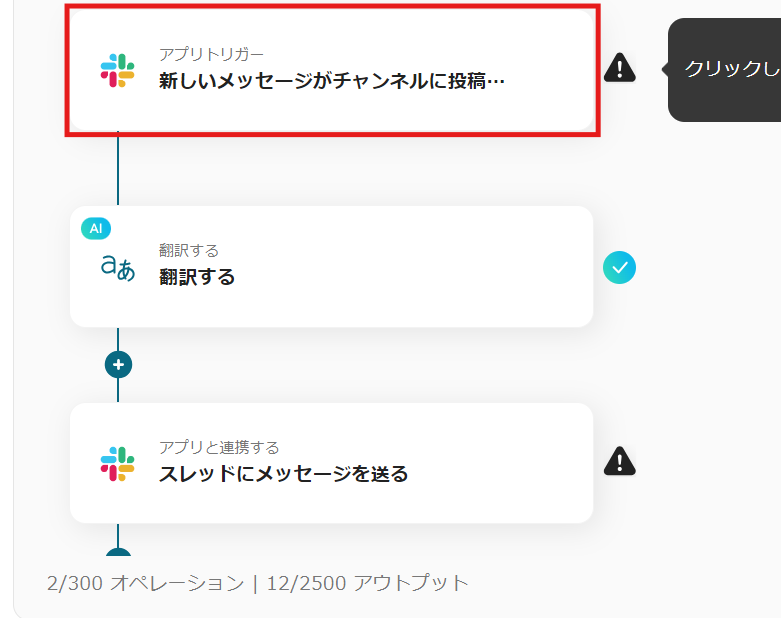 Slackで投稿されたメッセージを翻訳して、翻訳版をSlackに投稿するフローです。