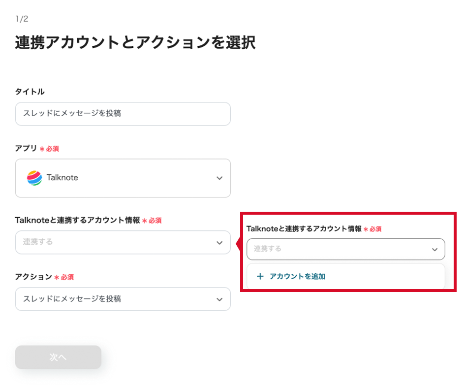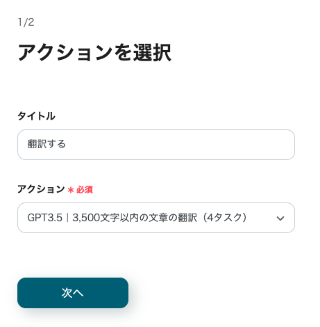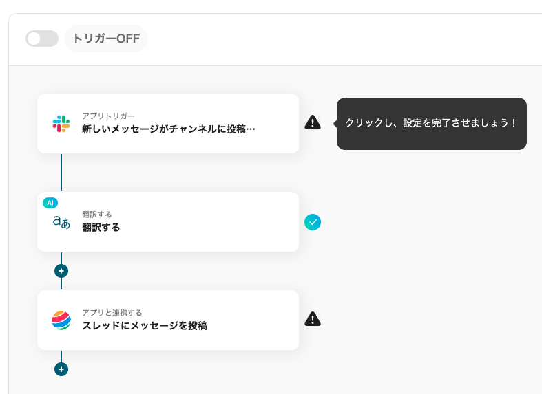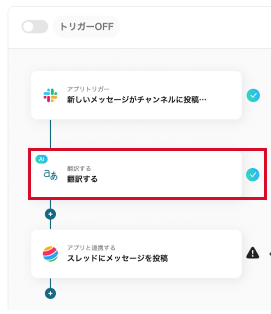 プロセスの3番目をクリックします。翻訳した内容をTalknoteに投稿する設定を行います。