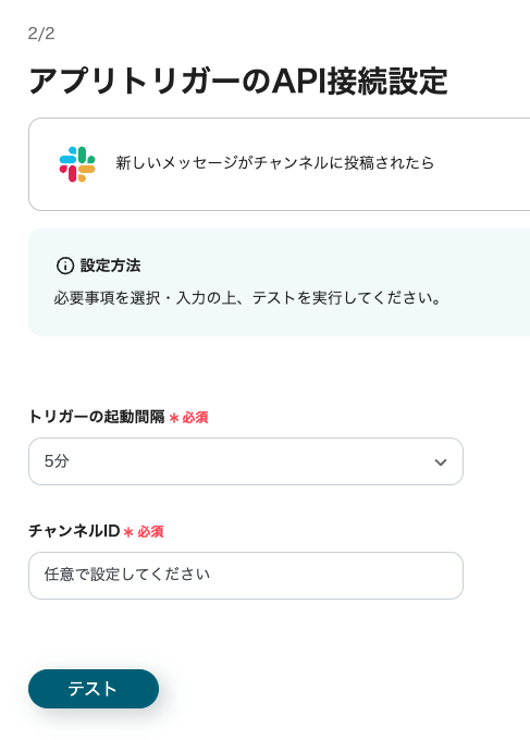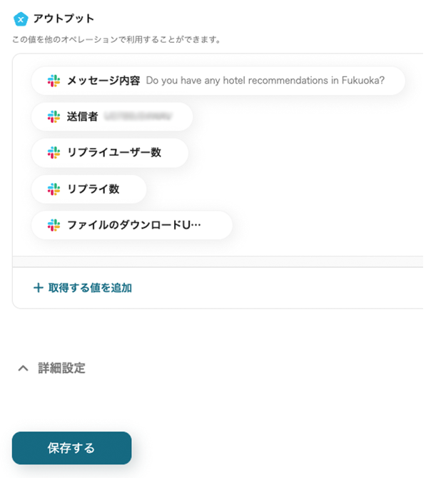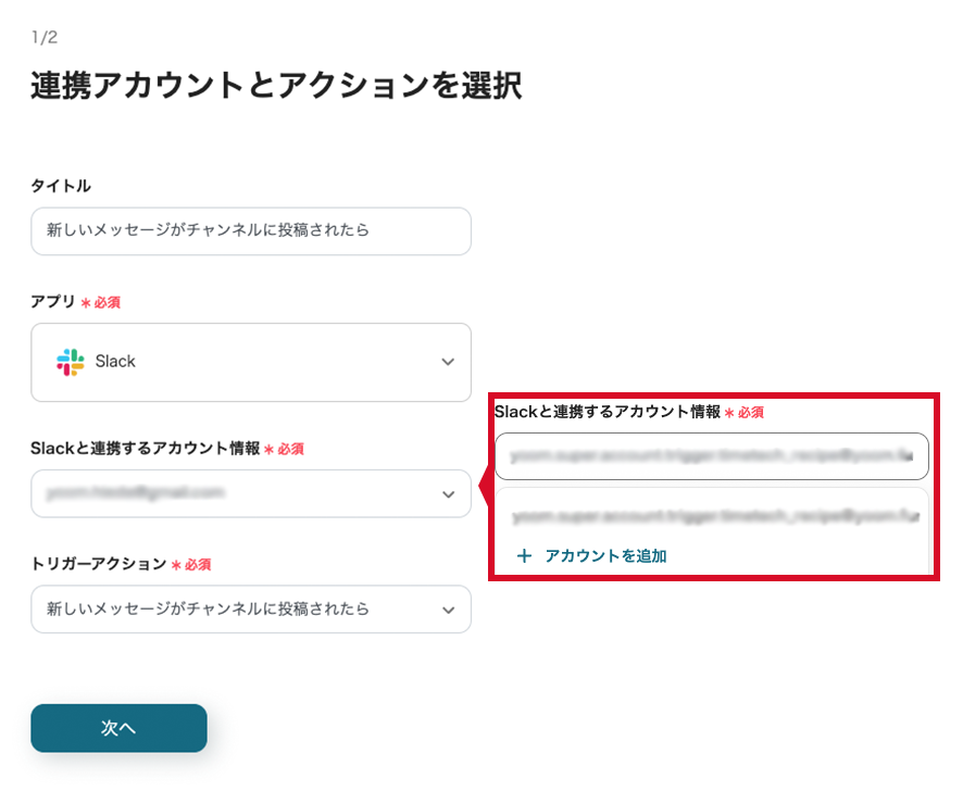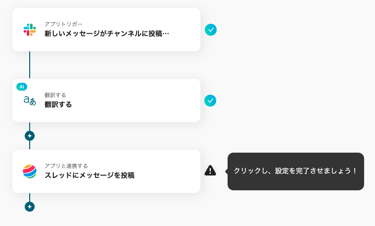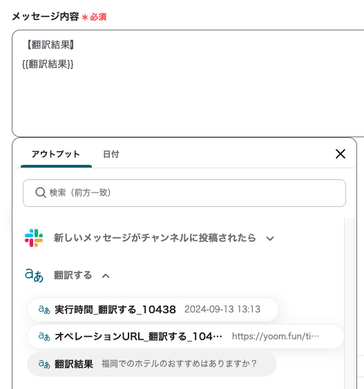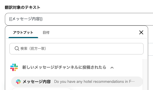プロセスの2番目をクリックします。Slackに投稿されたメッセージを翻訳の対象として設定します。
