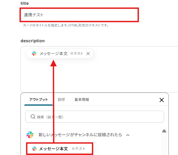 - description→アウトプットから「メッセージ本文」を選択