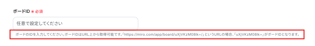 「ボードID」のみ必須の入力項目となっており、その他の項目については必要であれば入力する形になっております。