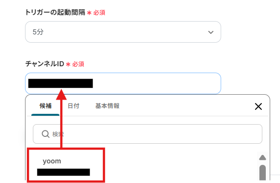 4.「チャンネルID」を候補から選択します。