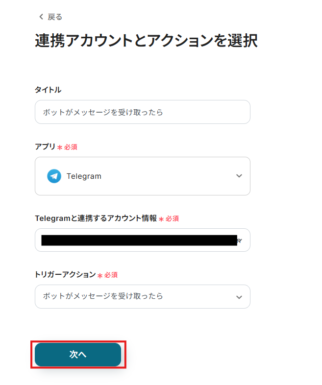 ステップ3:Telegramのトリガー設定