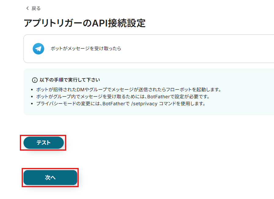4.次の画面で、Telegramにてメッセージを送信しましょう!