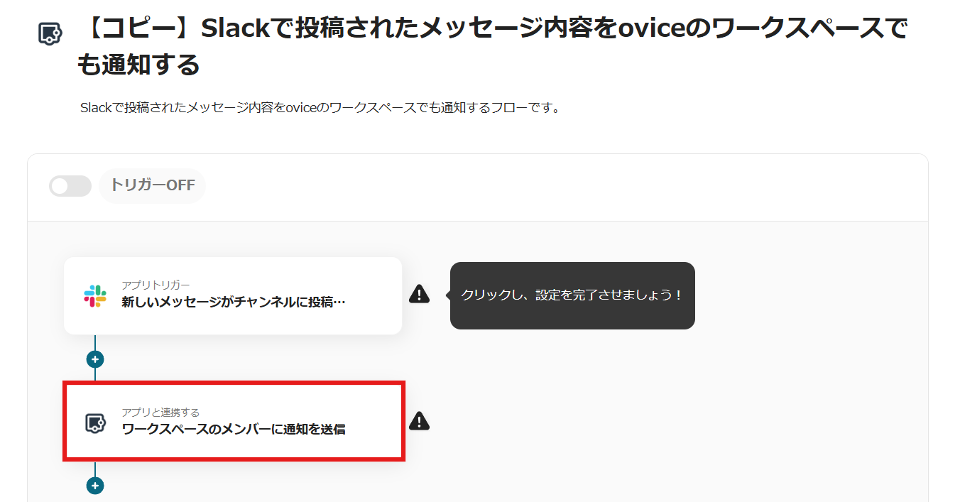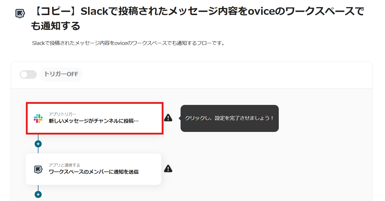 「【コピー】Slackで投稿されたメッセージ内容をoviceのワークスペースでも通知する」をクリックします。