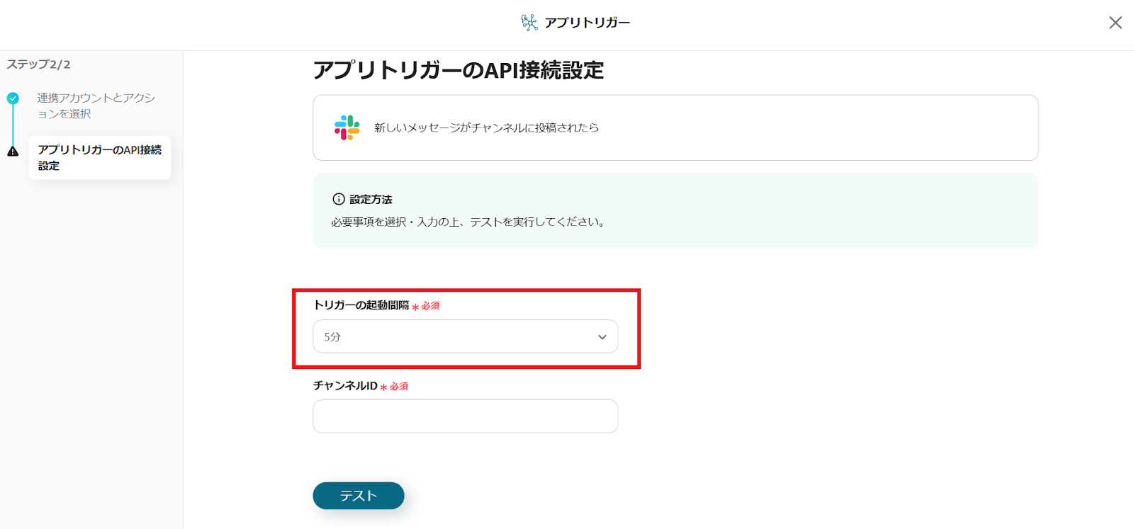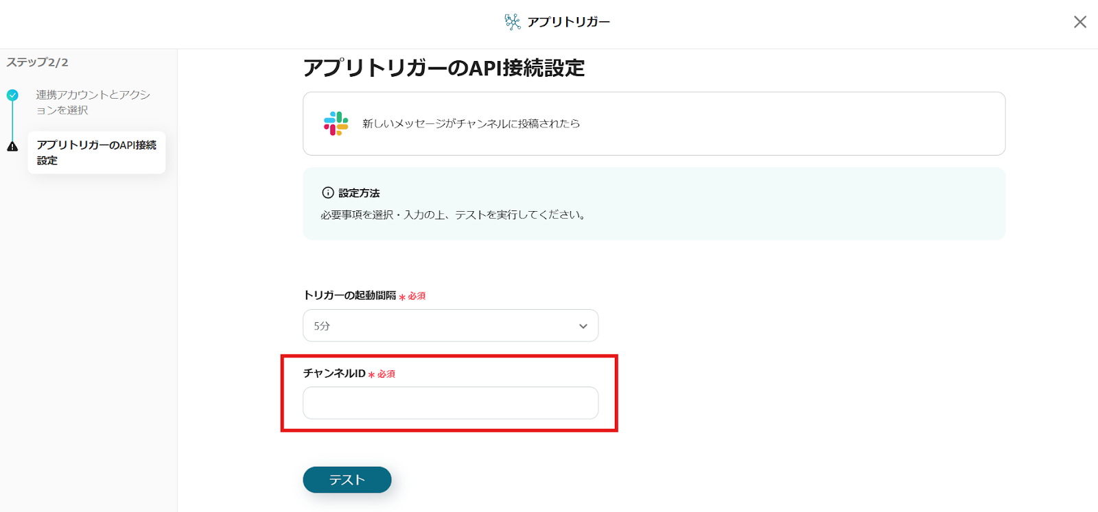 ※事前にテスト用のメッセージを指定したチャンネルに送信しておくことをおすすめします。