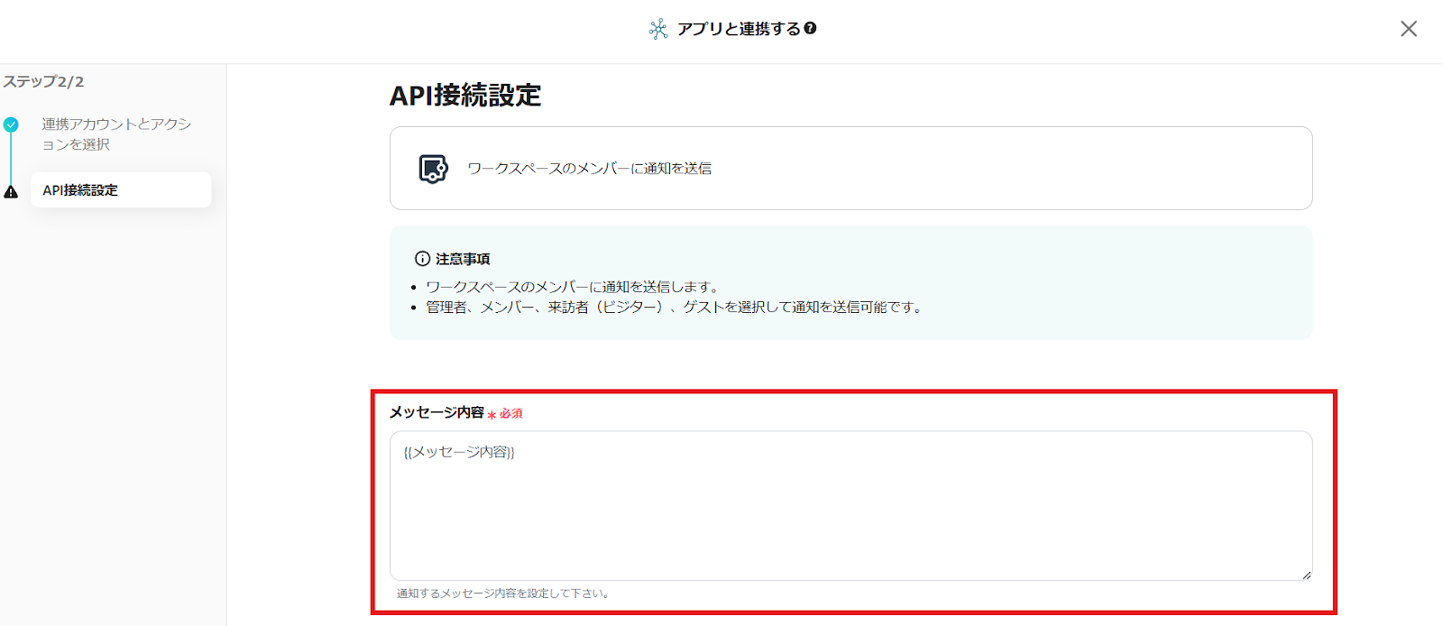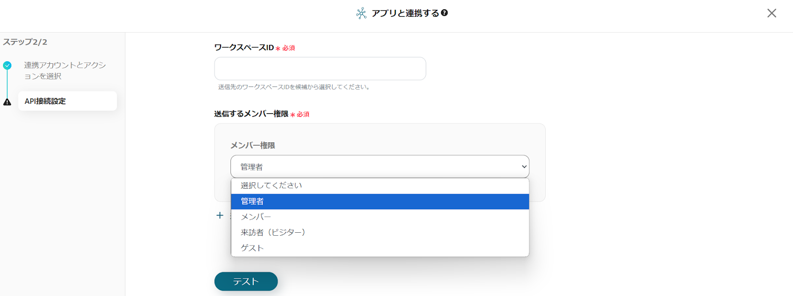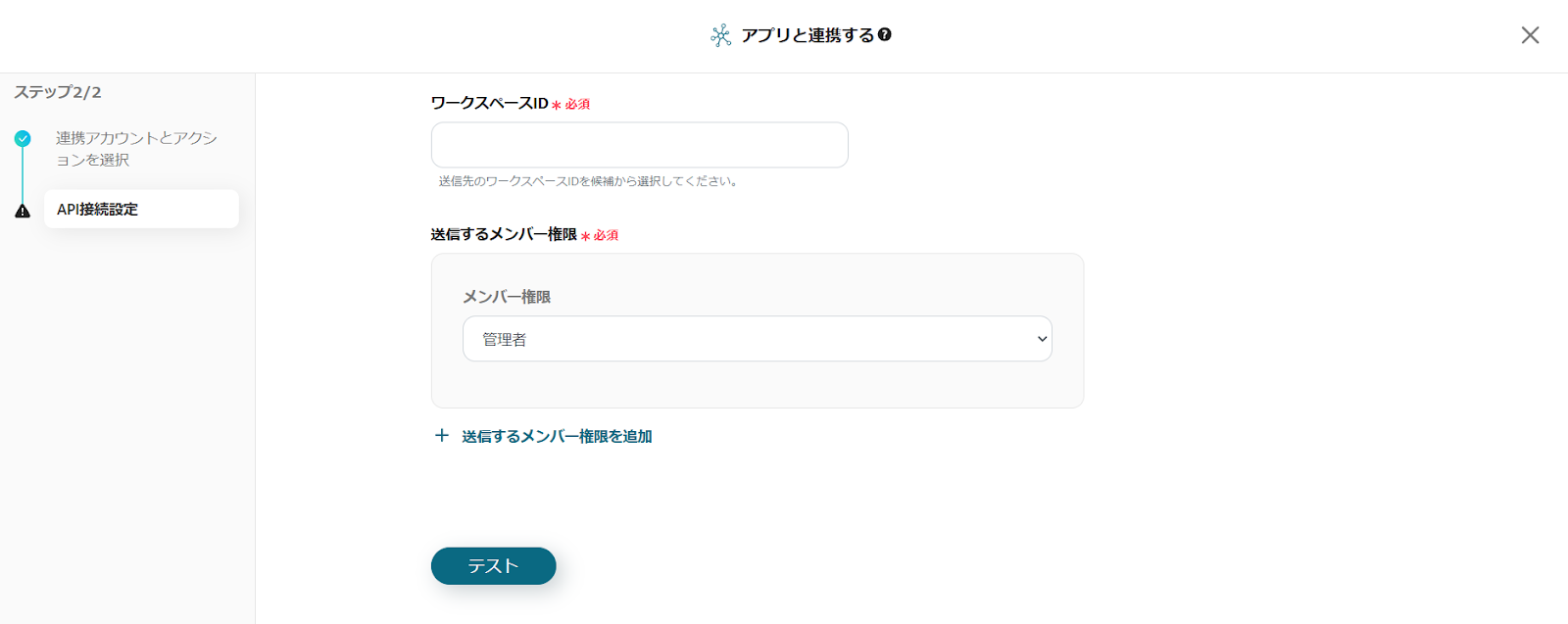 ワークスペースIDと送信するメンバー権限を設定してください。
