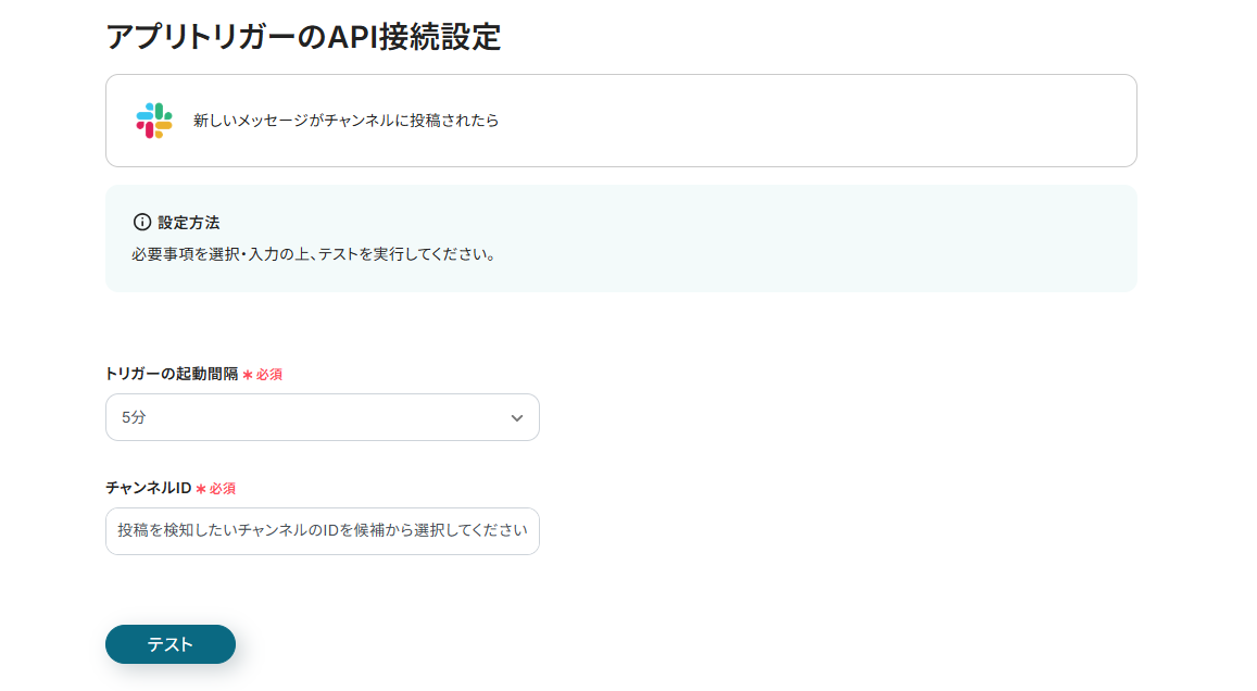 「アプリトリガー | 新しいメッセージがチャンネルに投稿されたら」をクリックしてみましょう!
