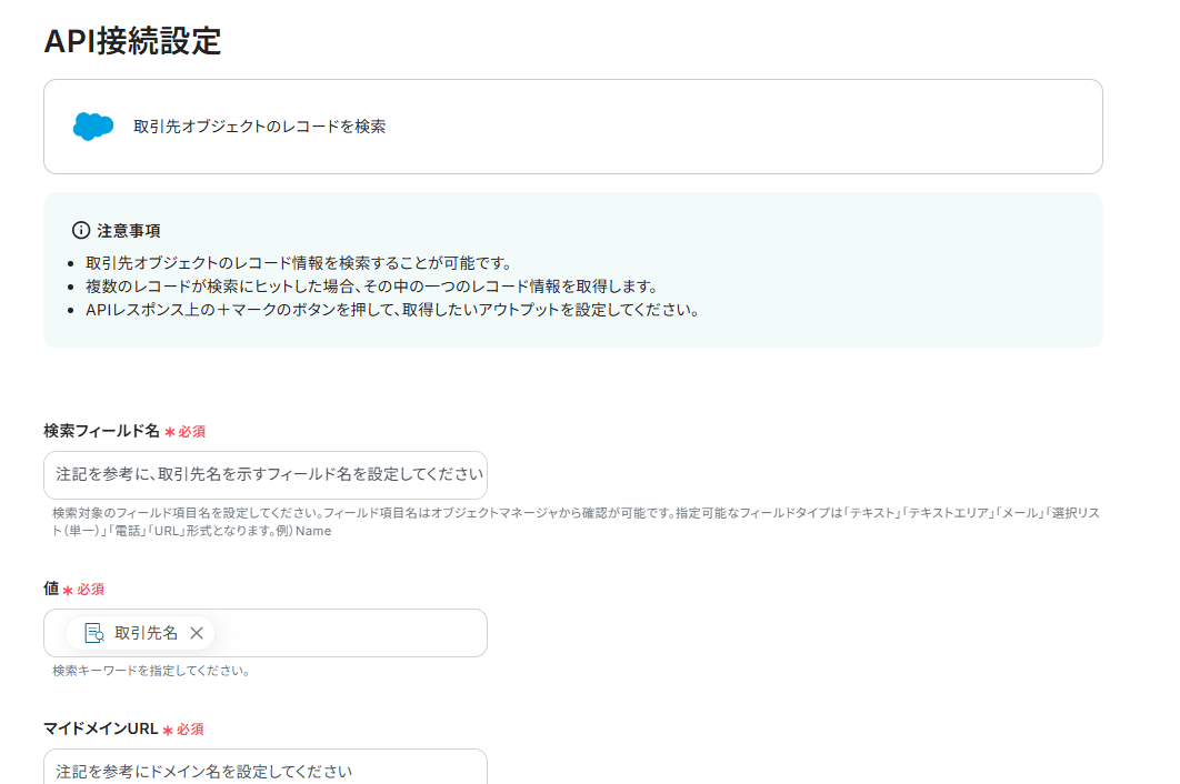 ステップ5:Salesforceのレコードを検索するアクション設定