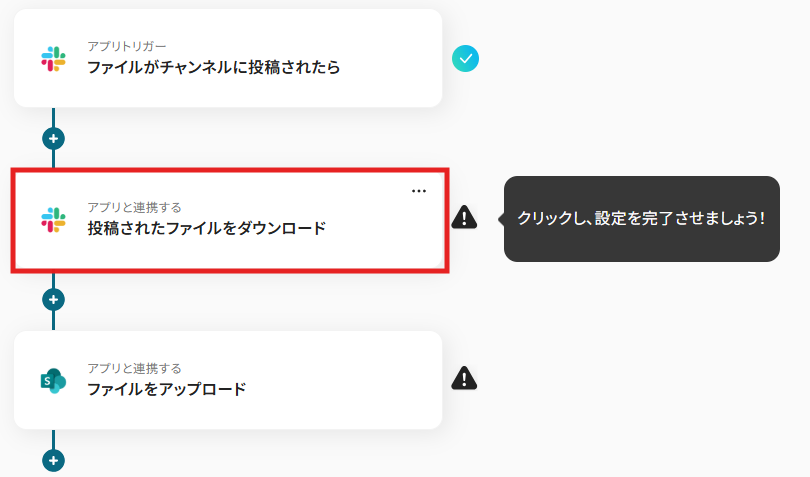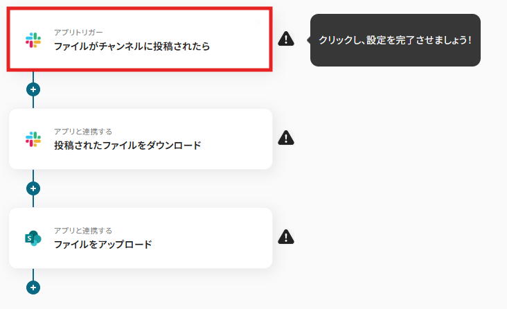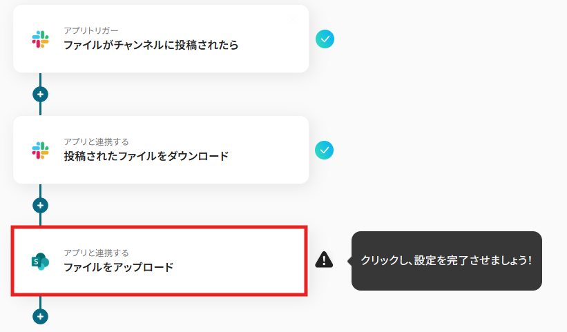 これで【Slackのチャンネルに投稿されたファイルをMicrosoft SharePointにアップロードする】というフローが完成です。