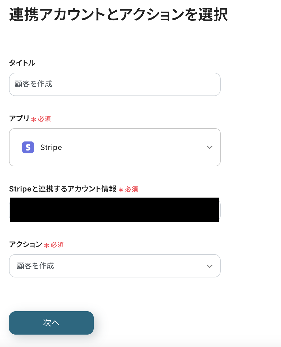 連携アカウントとアクションを選択