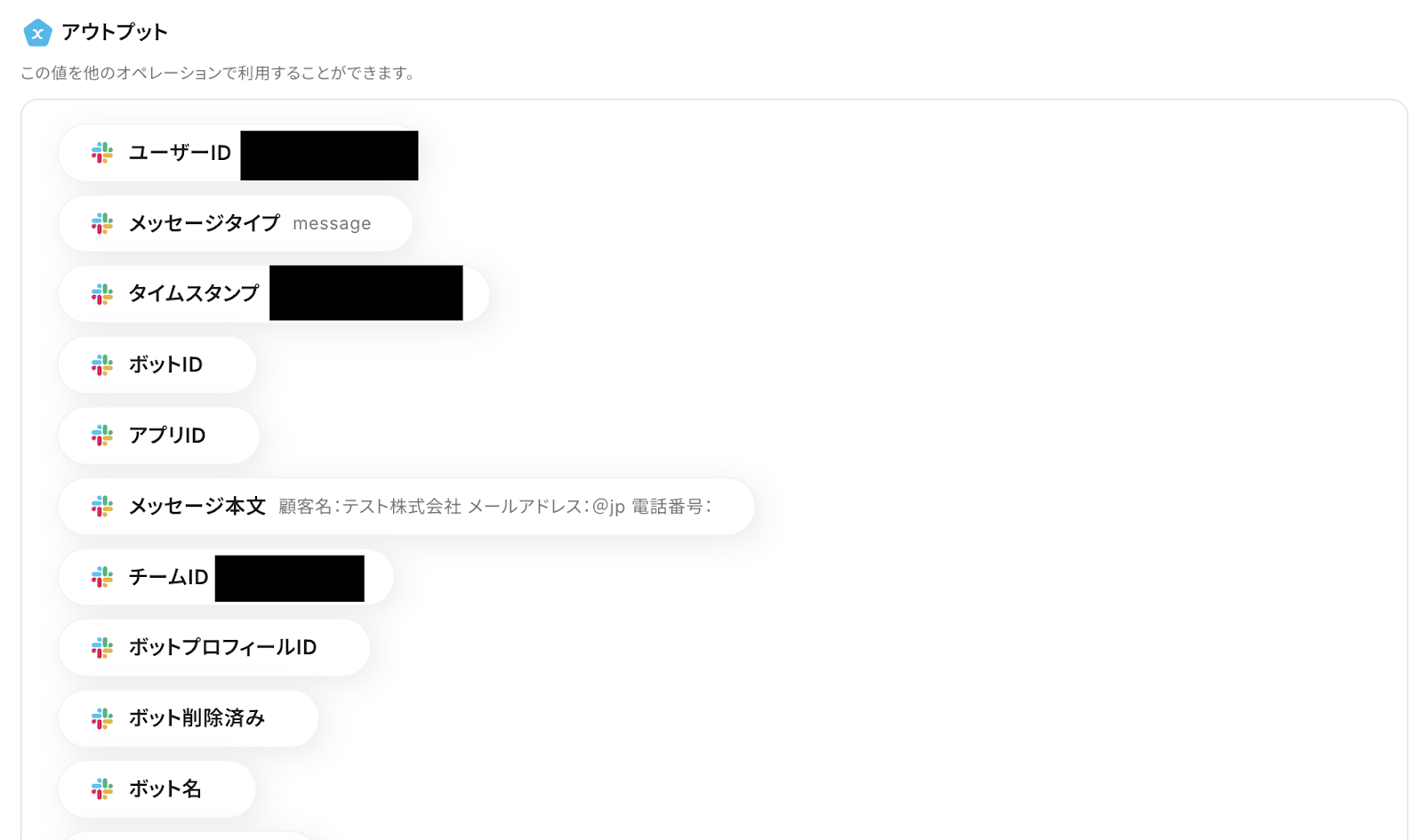 設定後、Slackに新しいメッセージをチャンネルに投稿して、テストを実行しましょう。