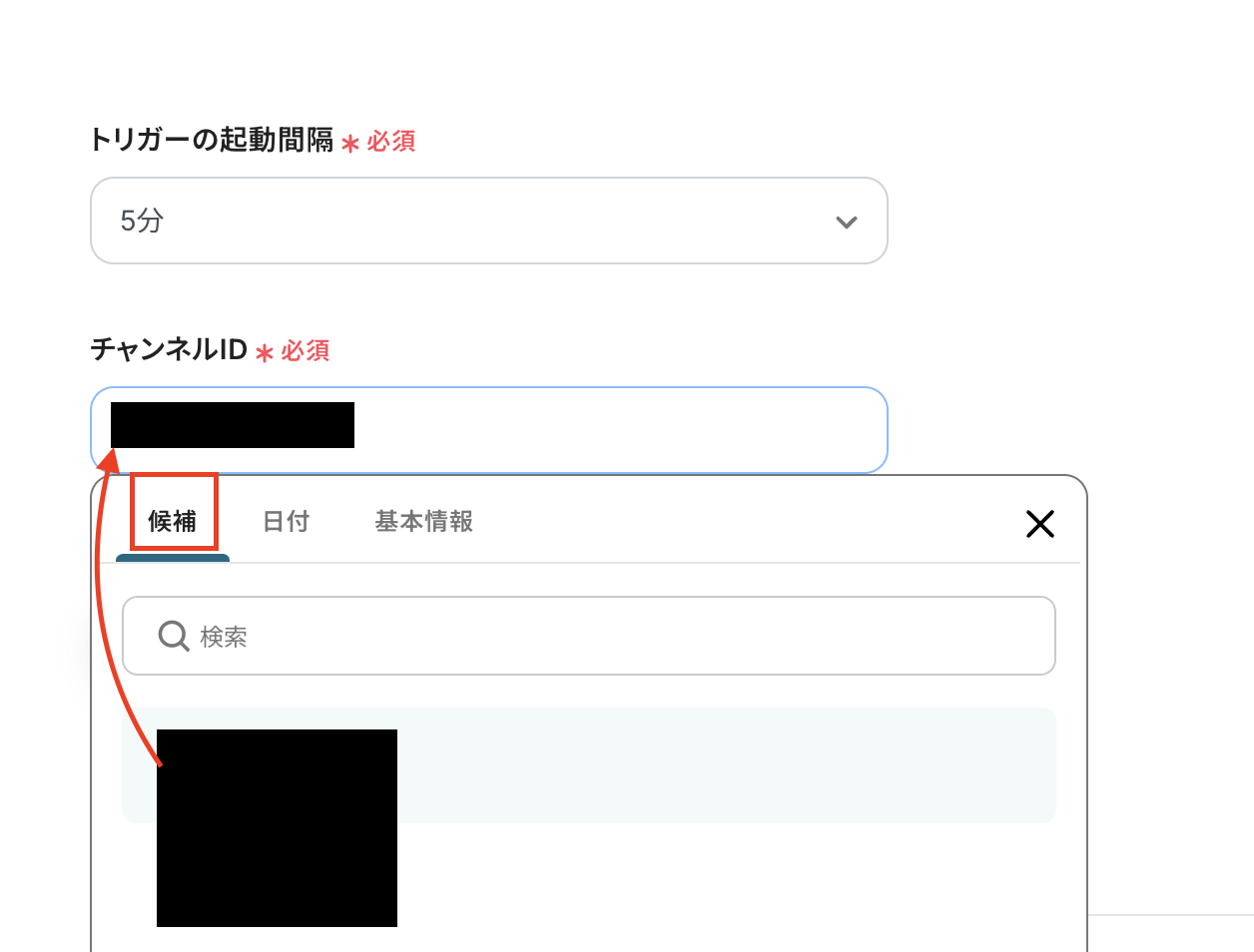 チャンネルIDを候補から選択します。