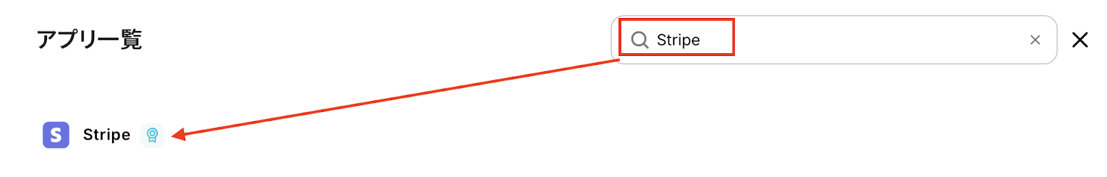 アプリ一覧は検索窓でStripeを検索し、選択しましょう。