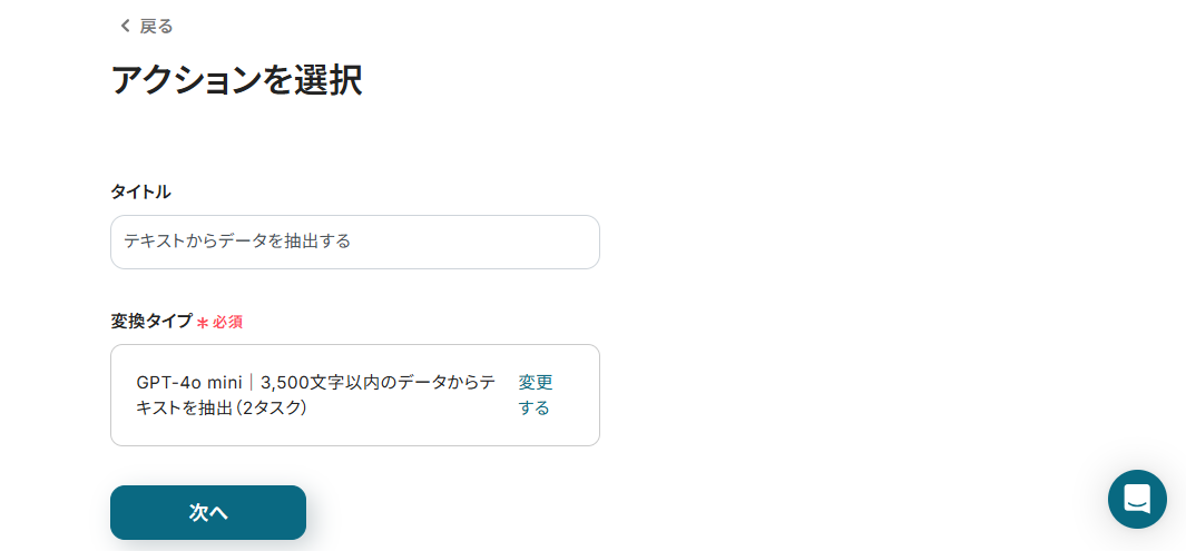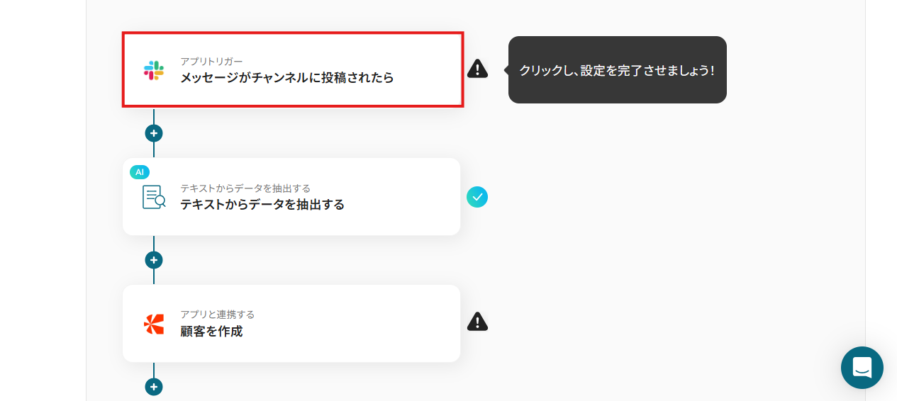 AI機能を活用してSlackのメッセージからChargebeeの顧客に自動登録するために必要なデータを抽出する設定を行います。