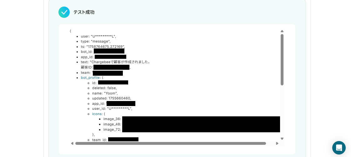 この連携を活用すれば、Chargebeeでの顧客作成をトリガーにSlackへその旨を自動通知可能です。顧客登録から共有までの流れをスムーズにし、チームでのデータ共有を円滑にします。