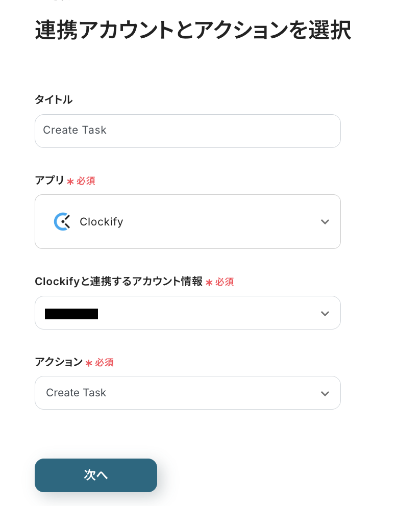 API Key:Yoomと連携するClockifyアカウントから値を取得して入力します。