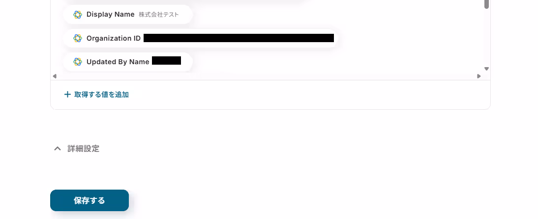 テストが成功し、データを正しく取得できたら「保存する」ボタンを押しましょう。