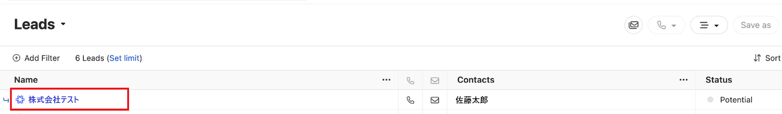 Closeの画面を開き、リードが自動で登録されているのを確認しましょう。