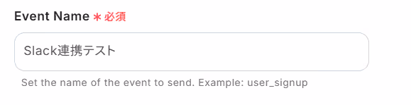 「Event Name」には、任意で手入力による固定値やSlackから取得した値を設定してください。