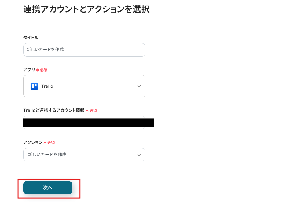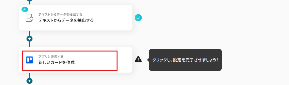 4. 最後に、オペレーションでTrelloの「新しいカードを作成」アクションを設定し、AIで抽出した情報を基にカードを作成します。