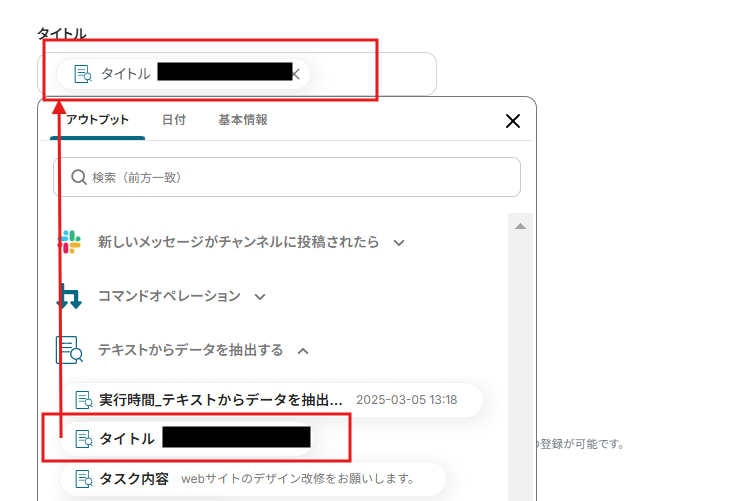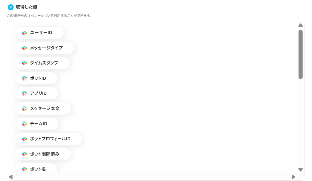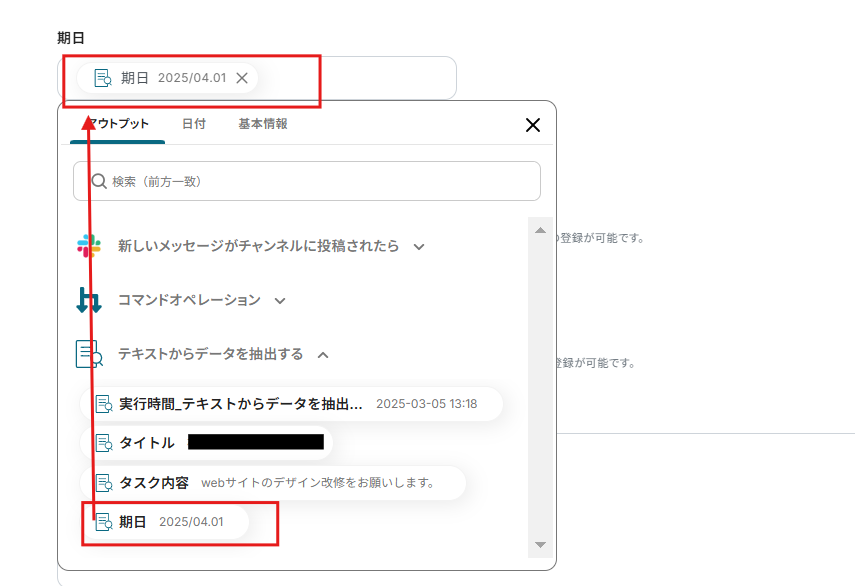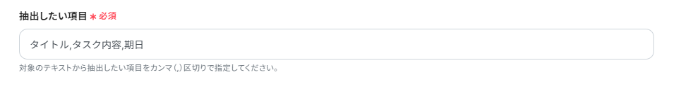 • AI機能のオペレーションでは、Slackのメッセージから抽出したい項目(例:タスク名、担当者、期限など)を自由に定義できます。