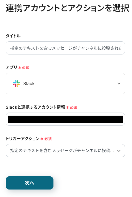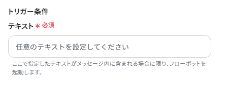 • Slackのトリガー設定では、監視対象のチャンネルや、フローを起動させるためのキーワードを任意で設定してください。