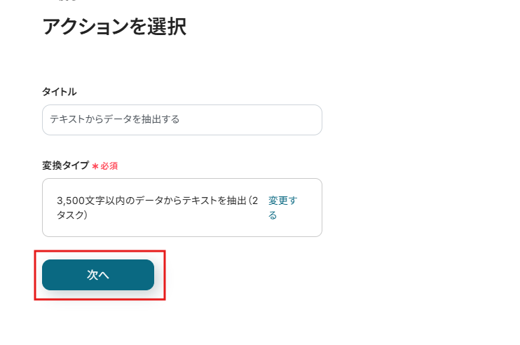 • データ抽出機能の設定では、メール本文からどのような情報を抽出するか「変換タイプ」や「抽出したい項目・指示内容」を任意で設定できます。