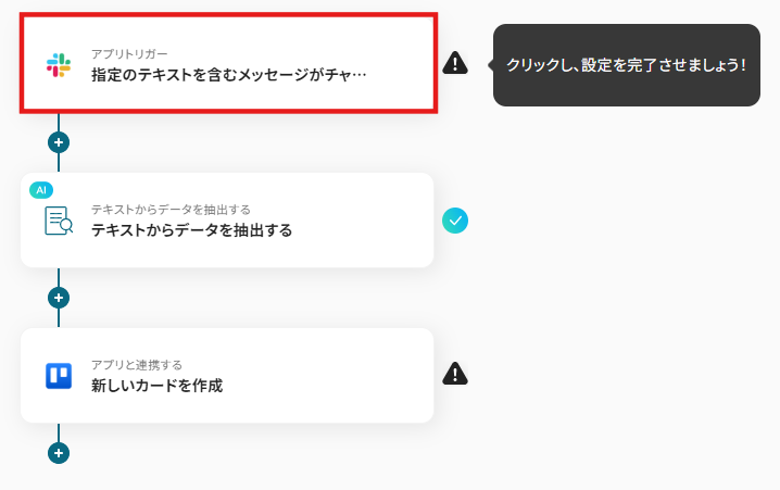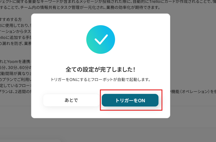 このフローを利用すると、Slackの通知内容をもとにTrelloにカードが自動作成されます。