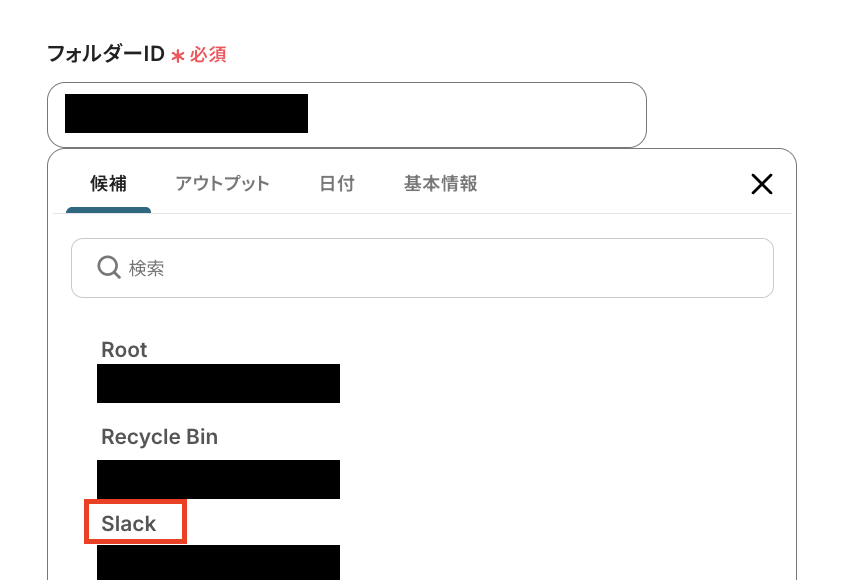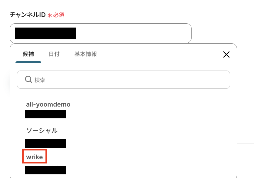 「チャンネルID」欄をクリックして表示される候補から選択しましょう。