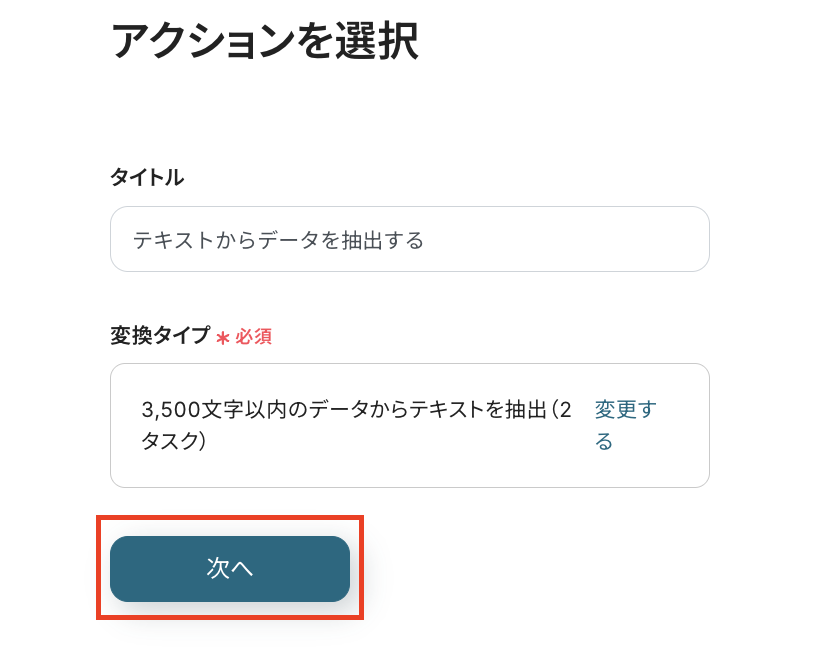 まずは、AIを活用し、Slackの投稿文からデータを抽出するアクション設定です。