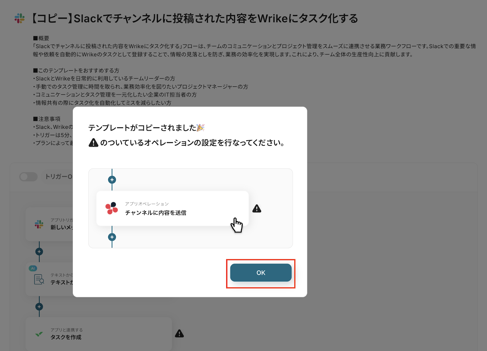 コピーしたテンプレートの、「新しいメッセージがチャンネルに投稿されたら」をクリックしてください。