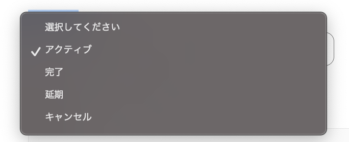タスクを自動作成した際のステータス設定です。必要に応じてプルダウンメニューから選択してください。