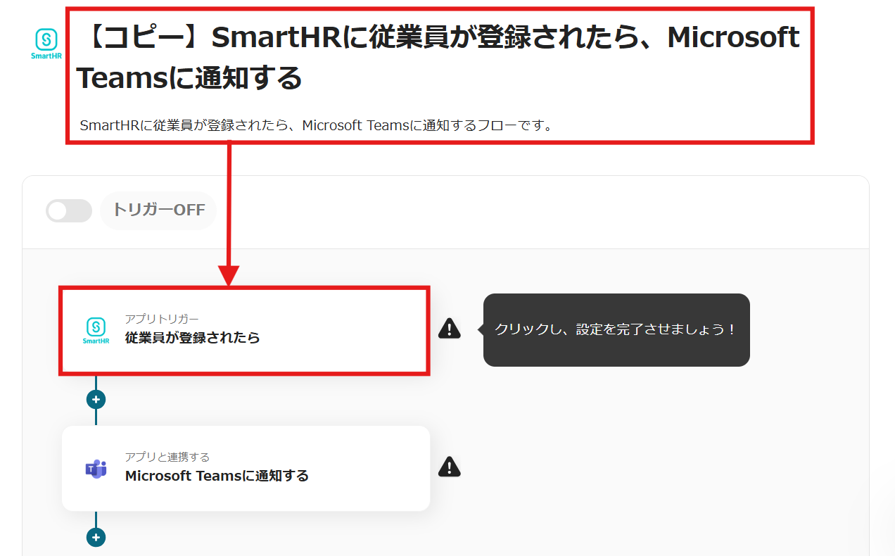 1.SmartHRで従業員が削除されたら、Microsoft Teamsに自動通知するフローです。