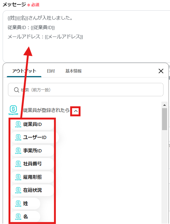 SmartHRのアウトプットを使用して設定することで、自動的に従業員情報を取得できます。