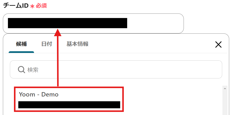 以下の画面が表示されたら、「チームID」を候補から選択します。