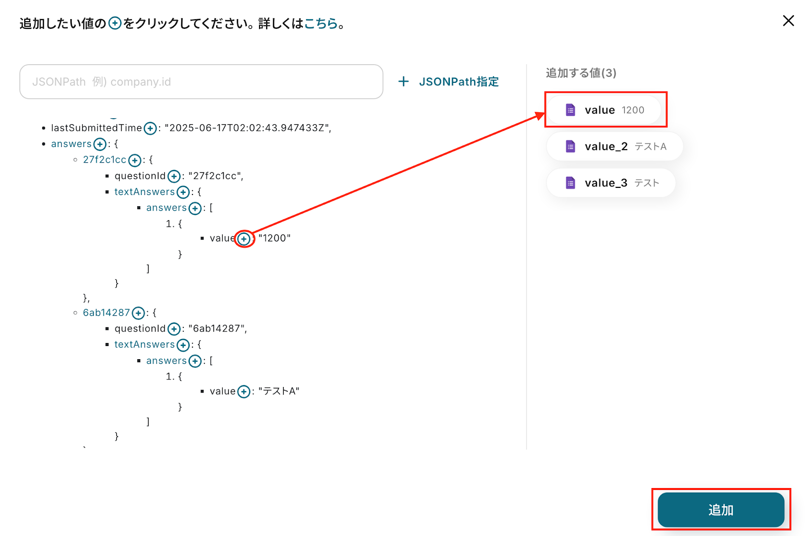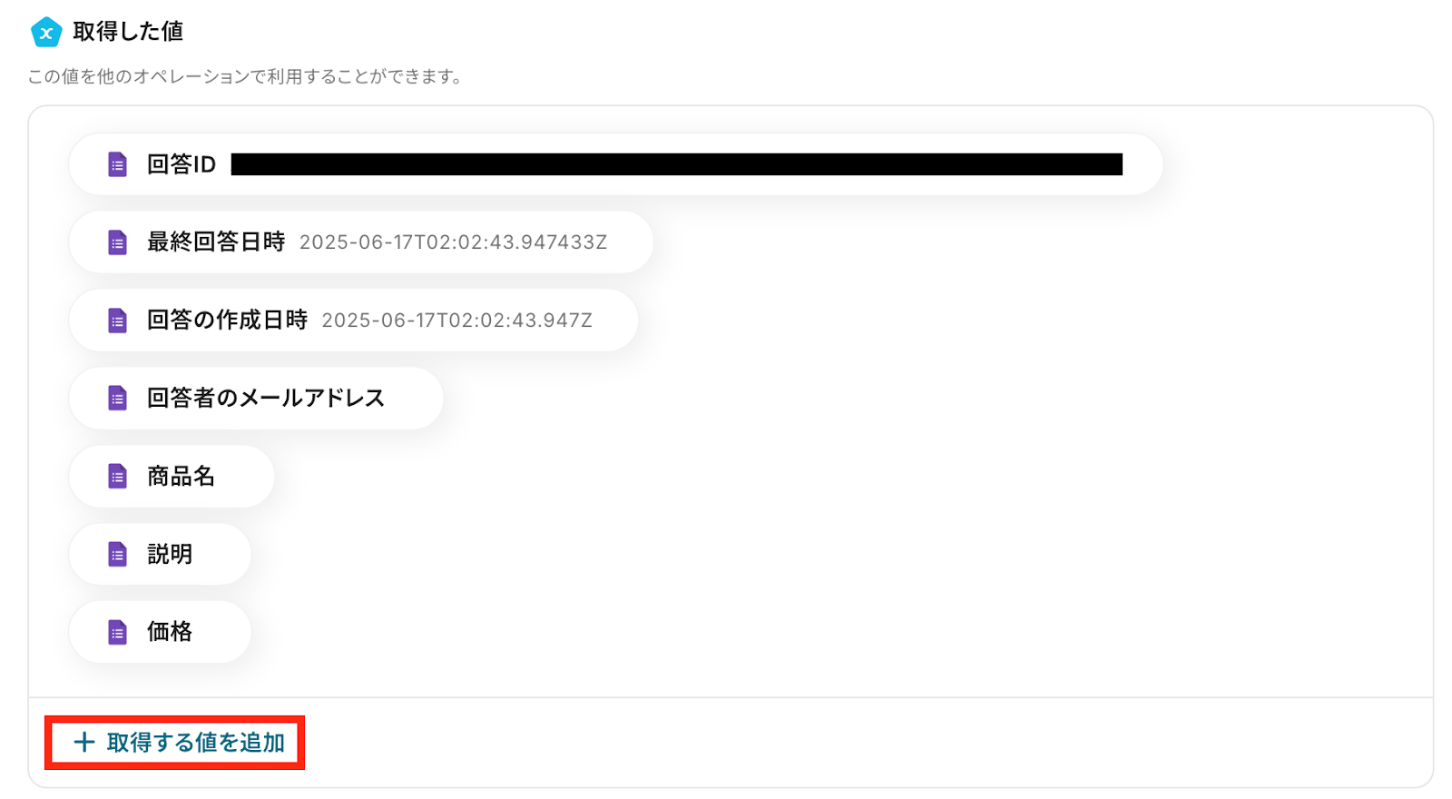 - 最後に、オペレーションでNotionの「レコードを追加する」アクションを設定し、取得した商品情報をNotionの指定データベースに追加します。
